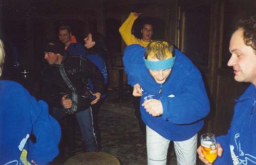 Do oubn isches obor richtig aufgongen, wia long nimmer. Mit fixn Blick aufn Bier von Ander (rechts im Bild), sprintet dor Markus drauf zua mit dor Obsicht dasselbe on sich zu reißn und aus zu saufn.